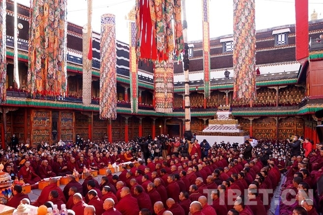 中國西藏網(wǎng)訊 日前,全國政協(xié)常委、中國佛教協(xié)會副會長、中國佛教協(xié)會西藏分會會長班禪額爾德尼?確吉杰布在扎什倫布寺順利通過考核,獲得藏傳佛教格魯派最高學(xué)位之一的“嘎欽”學(xué)位。10月28日上午10時,慶祝班禪獲得“嘎欽”佛學(xué)學(xué)位儀式在西藏自治區(qū)日喀則市扎什倫布寺多加大院舉行,近千名僧尼、信教群眾共慶盛事。