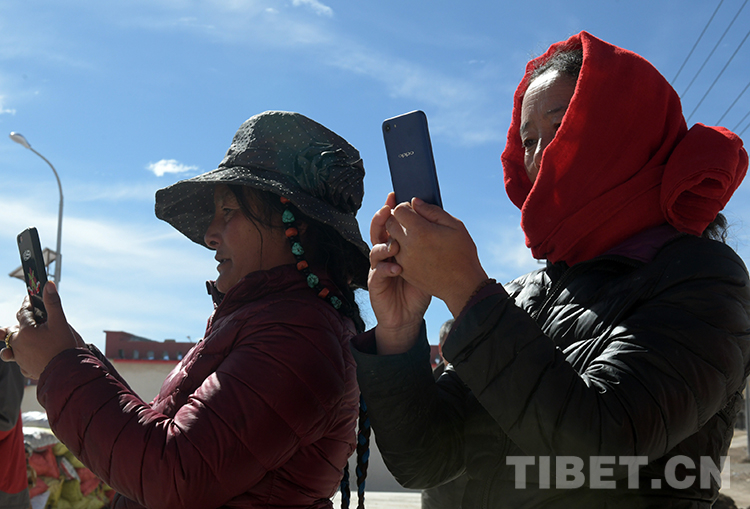 這是聶榮縣色慶鄉(xiāng)帕玉村兩位牧女使用手機(jī)了解外面的精彩世界?,F(xiàn)在,藏北高原許多牧民群眾使用上了手機(jī)(唐召明2019年9月27日攝)