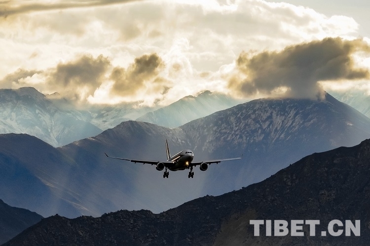 圖為一架飛機即將降落在拉薩貢嘎機場