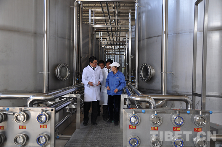 圖為拉薩海關(guān)關(guān)員在企業(yè)現(xiàn)場指導(dǎo)工作