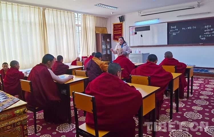 圖為佛學院學員在學習基礎文化知識 攝影:王淑