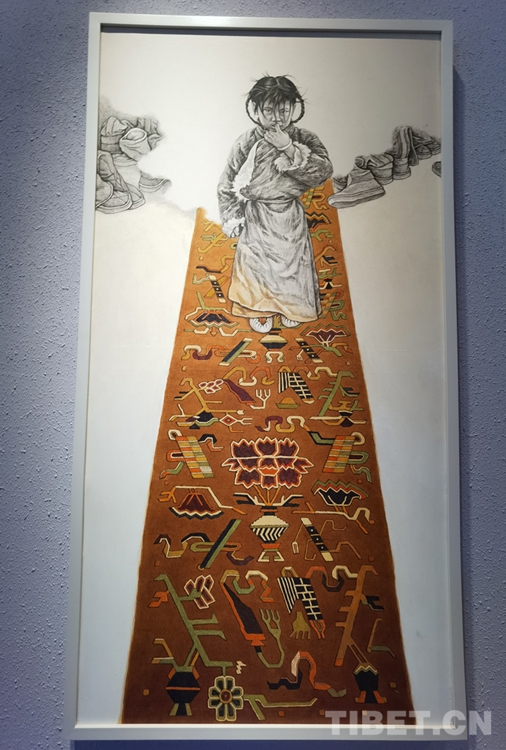 此次展覽共有39位藝術(shù)家的70多幅作品展。藝術(shù)家們?cè)诶^承西藏傳統(tǒng)的藝術(shù)形式上,利用西藏特殊元素引入各種畫種之中,并引入新的題材,讓其變得十分廣泛,同時(shí)也融合了油畫、水墨畫、水彩、雕塑等。