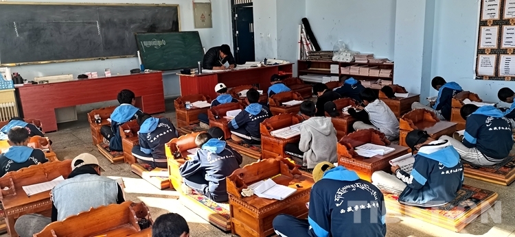 圖為薩迦縣中學(xué)藏文書(shū)法社在上課