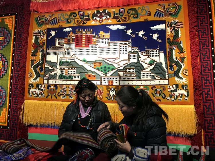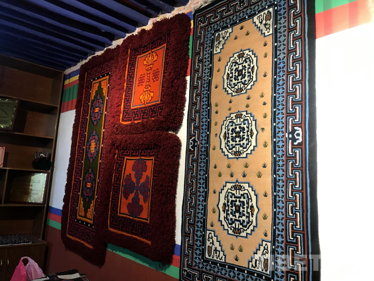 “剛到合作社每天工資160元,一個月下來就有小四千,一年收入妥妥的超3萬元。”說話間,巴頓也沒有歇下手中的活計。穿桿結扣,勤勞的雙手一直忙碌著,在合作社6年多,他已經比較熟練地掌握了卡墊織法、色彩以及紋樣。如今,卡墊接活都是以承包方式,往往供不應求,一家人住在裝修一新的藏式小院里,妻子現(xiàn)在也在參加合作社新員工培訓,四個孩子都進了公立學校讀書,享受了義務教育免費“三包”政策。
