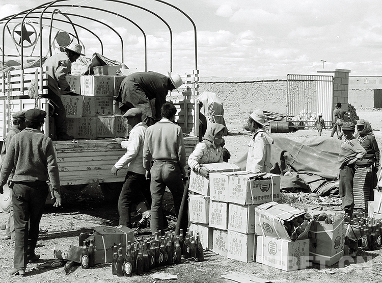 這是雙湖辦事處(現(xiàn)雙湖縣)貿(mào)易公司人員正在卸車(chē),這些啤酒等食品飲料均由雙湖西亞爾公司組織貨源運(yùn)輸而來(lái)(唐召明1987年攝)