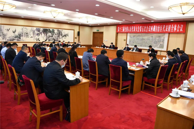 圖為3月5日,十三屆全國人大五次會議西藏自治區(qū)代表團在駐地舉行全體會議,審議李克強總理所作的政府工作報告。旦增西旦 攝