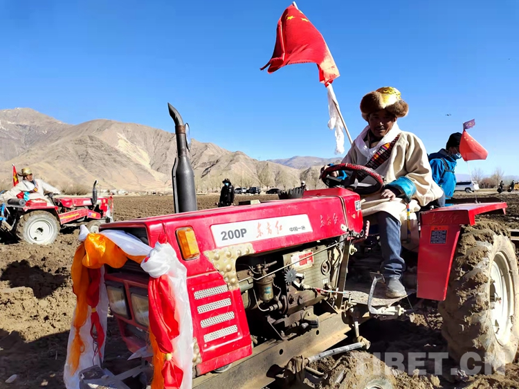 中國(guó)西藏網(wǎng)訊 3月15日,西藏自治區(qū)拉薩市曲水縣才納鄉(xiāng)協(xié)榮村開(kāi)啟春耕首日“第一犁”。拉薩河谷地帶的農(nóng)區(qū)迎來(lái)一年一度的春耕儀式,耕地機(jī)、旋耕機(jī)、平地機(jī)等打破了高原田野的寧?kù)o。