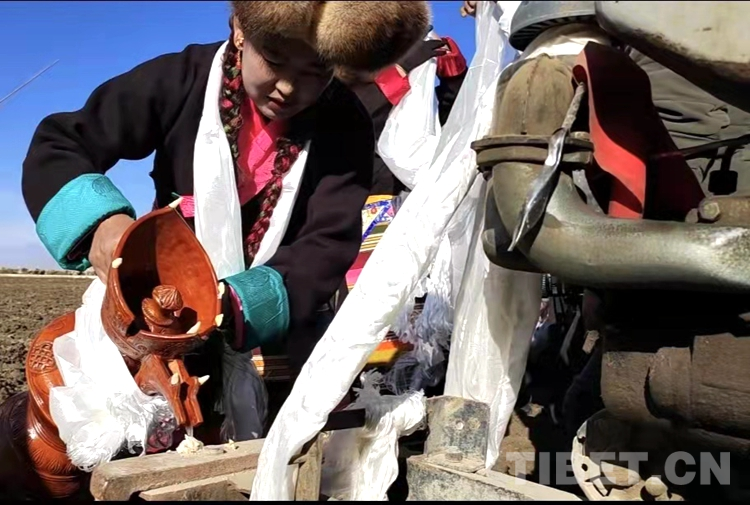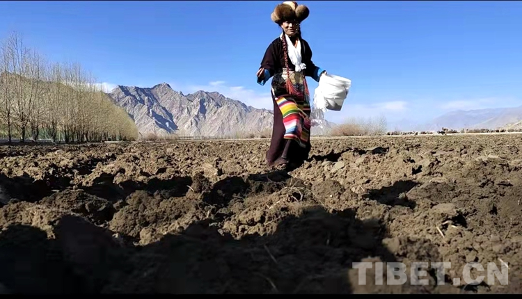在雪水浸潤(rùn)過(guò)的肥沃土地上,深耕機(jī)車(chē)輪翻滾而過(guò),駛過(guò)的土地上翻起深色的泥土,婦女們跟在后面播撒青稞良種?,F(xiàn)場(chǎng)一片轟鳴,熱鬧無(wú)比,廣袤、肥沃的土地上播種下了春天的希望。