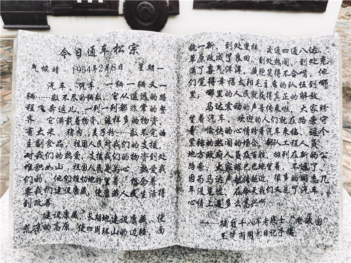 為更好地讓廣大干部群眾和八方游客了解筑路運輸?shù)钠D難困苦、順利通車波密時的動人場景,2021年12月,波密縣對廣場進行了提檔升級,從尊重歷史的角度,進一步論證規(guī)范了廣場名稱。“波密通車紀念廣場”八個鮮紅大字仿佛在講述那段激情燃燒的崢嶸歲月,紅色的碑文篆刻著筑路部隊驚心動魄修筑康藏公路時的艱辛與磨難,王笑雨同志的日記記錄著汽車駛?cè)氩軙r干部群眾臉上的激動與新奇……教育、激勵和引導(dǎo)廣大干部群眾堅定不移感黨恩、聽黨話、跟黨走。(中國西藏網(wǎng) 圖文/波密縣組織部紅色工作專班)