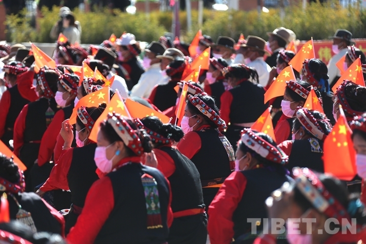 上午10時30分,伴隨著歌舞《歌頌幸?!罚瑧c祝西藏百萬農(nóng)奴解放63周年專場文藝演出拉開帷幕。《毛主席派人來》《逛新城》《翻身農(nóng)奴把歌唱》《新舊對比》等節(jié)目在現(xiàn)場掀起一個又一個高潮。舞臺下,滿是身著盛裝的各族群眾,不斷揮舞著手中的五星紅旗,臉上綻放著感動和幸福的笑容。