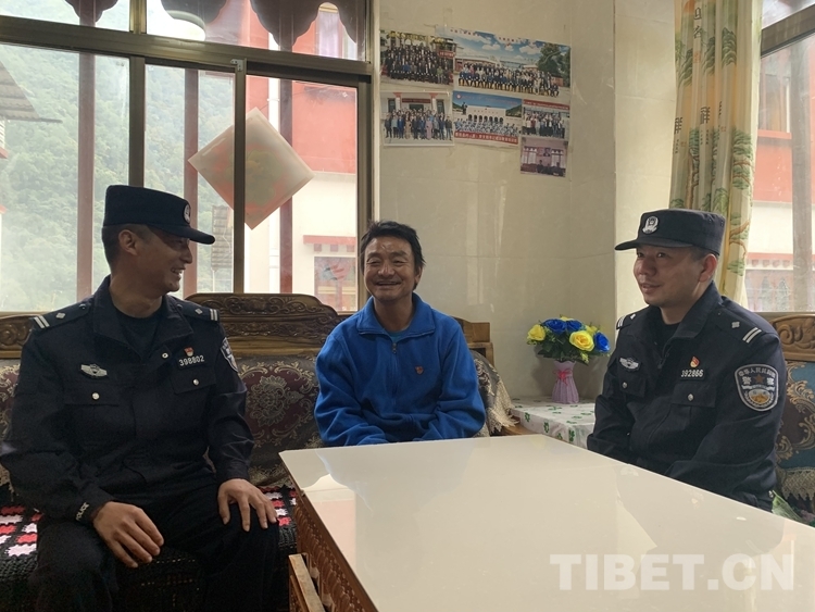 圖為西藏林芝背崩邊境派出所民警正在與轄區(qū)老黨員新生談?wù)撊缃裆畹淖兓?攝影:呂恒剛