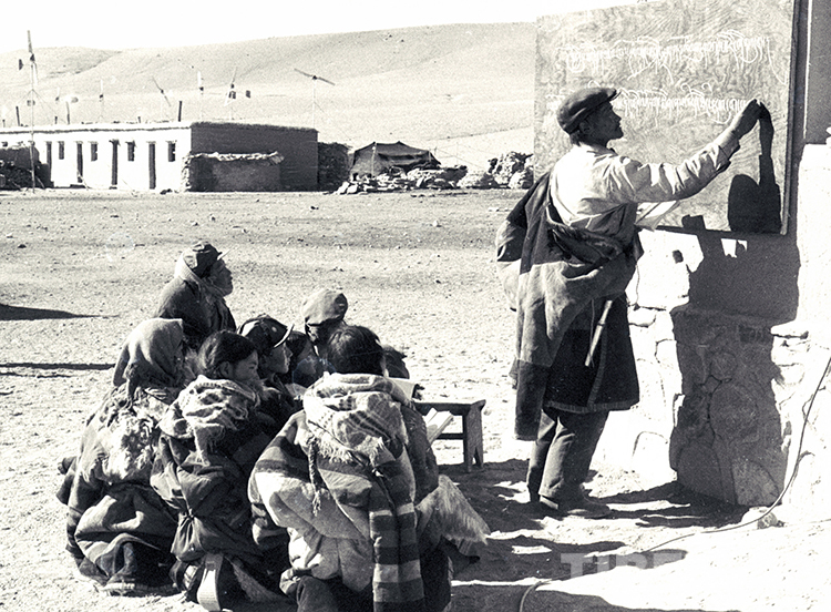 這是雙湖辦事處(現(xiàn)雙湖縣)嘎措鄉(xiāng)一村教師巴多在給孩子們上藏文課。巴多是村里唯一的教師,也是村里供銷(xiāo)社唯一的營(yíng)業(yè)員(唐召明1988年攝)
