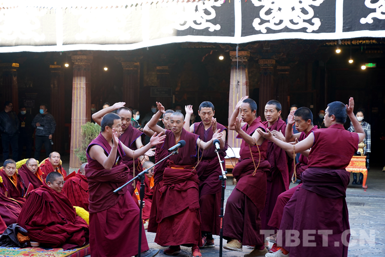 圖為西藏自治區(qū)2022年度藏傳佛教學(xué)經(jīng)僧人考核晉升格西拉讓巴學(xué)位立宗答辯暨頒證儀式現(xiàn)場(chǎng) 攝影:王淑