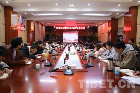 中國(guó)西藏網(wǎng)訊 近日,西藏自治區(qū)昌都市委統(tǒng)戰(zhàn)部舉辦“鑄牢中華民族共同體意識(shí)”專(zhuān)題講座。市民委黨組成員、一級(jí)調(diào)研員巴桑旺堆為干部職工講授民族團(tuán)結(jié)進(jìn)步模范區(qū)創(chuàng)建工作知識(shí)。