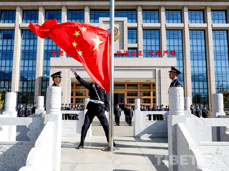 在林芝支隊機(jī)關(guān)大樓前,鮮艷的五星紅旗在雄壯的國歌聲中冉冉升起,機(jī)關(guān)全體民警警容嚴(yán)整、精神飽滿,用標(biāo)準(zhǔn)的敬禮向國旗致敬,向偉大的祖國和勞動人民致敬。