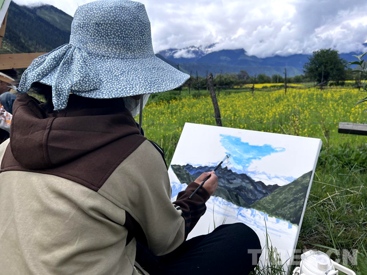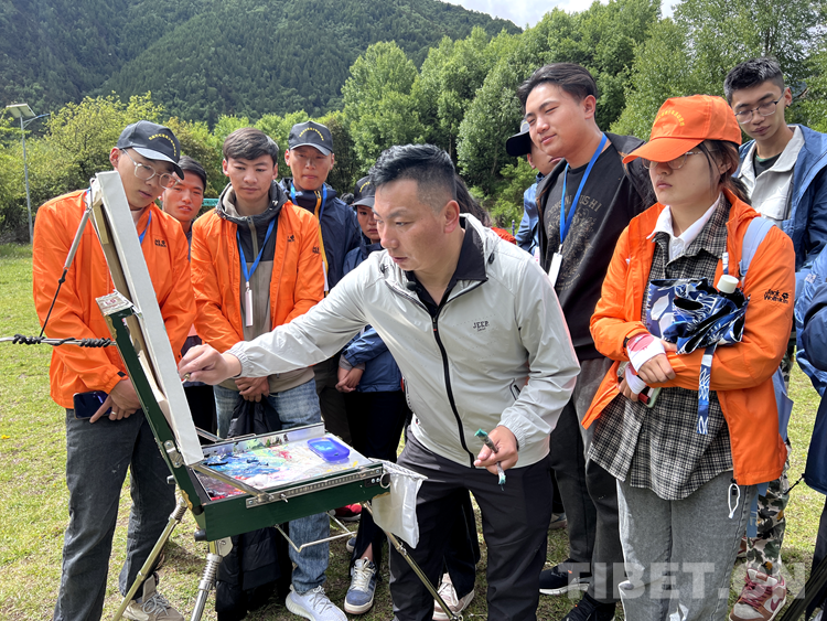 “參加這次活動讓我眼界大開,平時在學校大部分都是靠手機里的照片臨摹繪畫,很少走出教室、面對大自然,這次機會很難得,只想把握時間盡情創(chuàng)作。明年畢業(yè)后,我會回到老家昌都市左貢縣,當一名基層美術老師,教小朋友們畫畫?!蔽鞑卮髮W藝術學院大三學生曲西說。