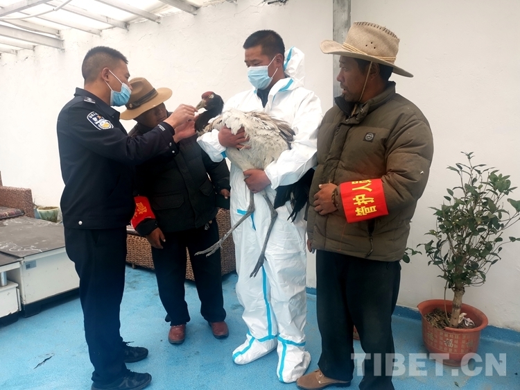結(jié)合丹頂鶴受傷情況,馬攸橋邊檢站立即聯(lián)系了普蘭縣駐馬攸木疫情防控點醫(yī)務(wù)人員,對受傷丹頂鶴進行初步檢查,并對傷口進行簡單的處理。同時,馬攸橋邊檢站積極與普蘭縣林業(yè)局取得聯(lián)系,請求派遣專業(yè)人員前往檢查站對受傷丹頂鶴做進一步的救助。目前,受傷丹頂鶴已經(jīng)移交普蘭縣林業(yè)局專業(yè)人員,并將帶回普蘭縣林業(yè)局做進一步的救治處理。