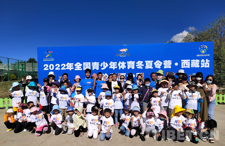 圖為2022年全國(guó)青少年體育冬夏令營(yíng)(西藏)輪滑夏令營(yíng)開營(yíng)儀式現(xiàn)場(chǎng)教練、學(xué)員及家長(zhǎng)們合影留念 攝影:拉姆