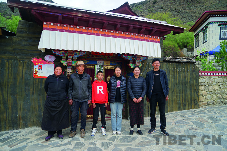 2021年7月21日,習(xí)近平總書記走進(jìn)嘎拉村村民達(dá)瓦堅(jiān)參家,與他們?cè)捈页?。圖為達(dá)瓦堅(jiān)參全家合影。 益西加措 攝