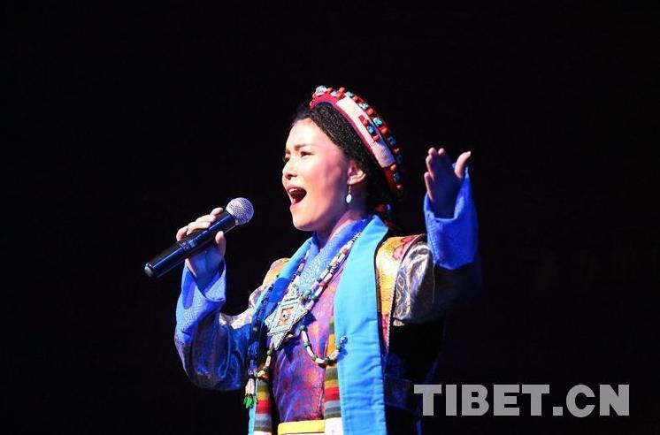 圖為開(kāi)幕式現(xiàn)場(chǎng)歌手傾情演唱首屆西藏文化藝術(shù)節(jié)主題曲《格?;ㄩ_(kāi)》 攝影:王佳豪