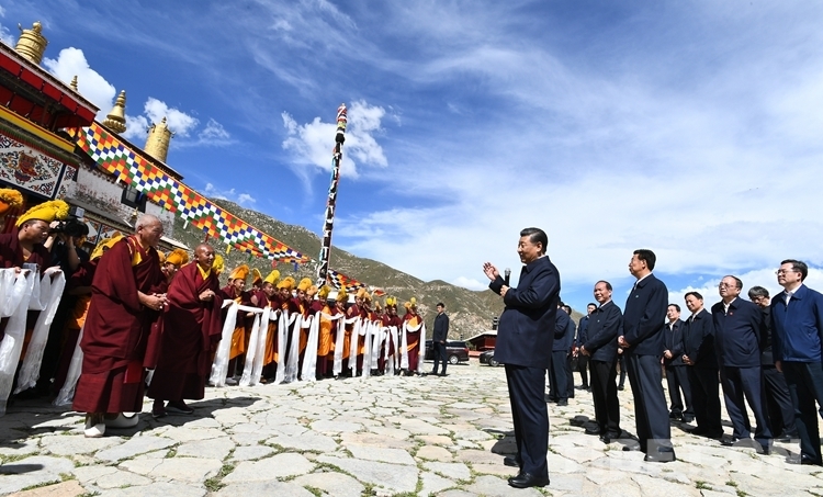 習近平總書記在哲蚌寺仔細察看了措欽大殿,認真聽取西藏自治區(qū)宗教工作開展情況和哲蚌寺管委會加強創(chuàng)新寺廟管理工作情況的匯報,并在大殿廣場發(fā)表重要講話。