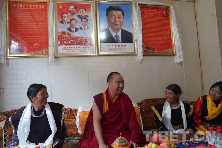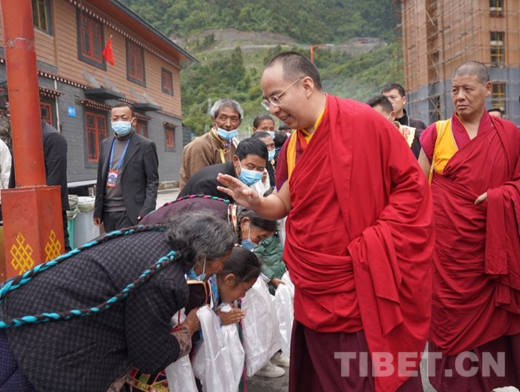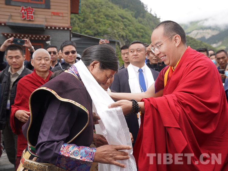 7月22日,全國政協(xié)常委、中國佛教協(xié)會副會長、中國佛教協(xié)會西藏分會會長班禪額爾德尼?確吉杰布來到西藏自治區(qū)山南市隆子縣玉麥鄉(xiāng)走訪看望“時代楷?!弊扛隆⒀胱诮忝?。