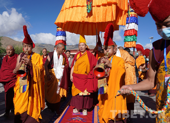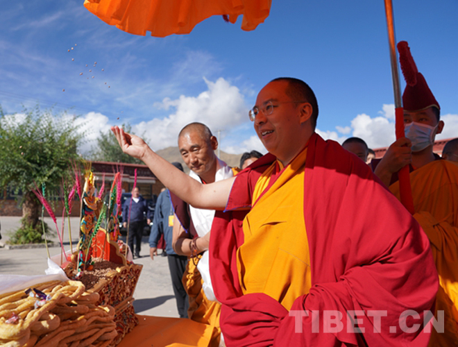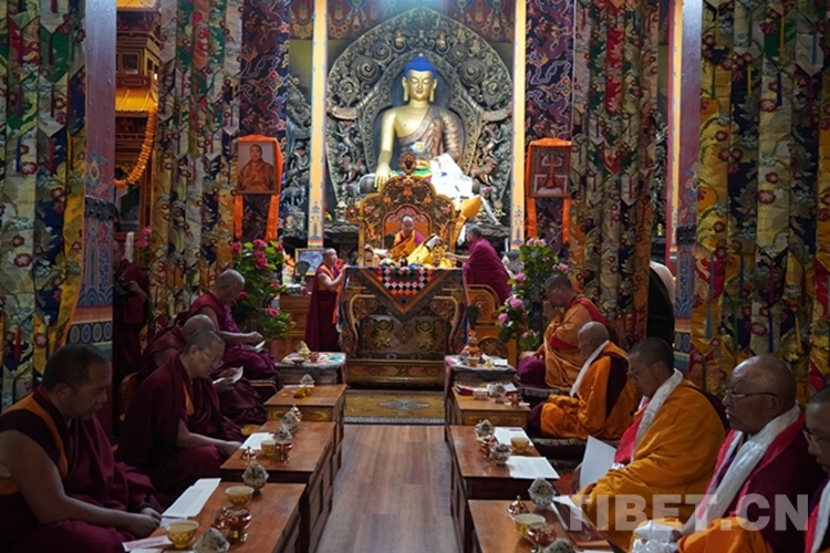 當(dāng)日,全國政協(xié)常委、中國佛教協(xié)會副會長、中國佛教協(xié)會西藏分會會長班禪額爾德尼?確吉杰布前往山南市隆子縣扎果寺禮佛講經(jīng)。