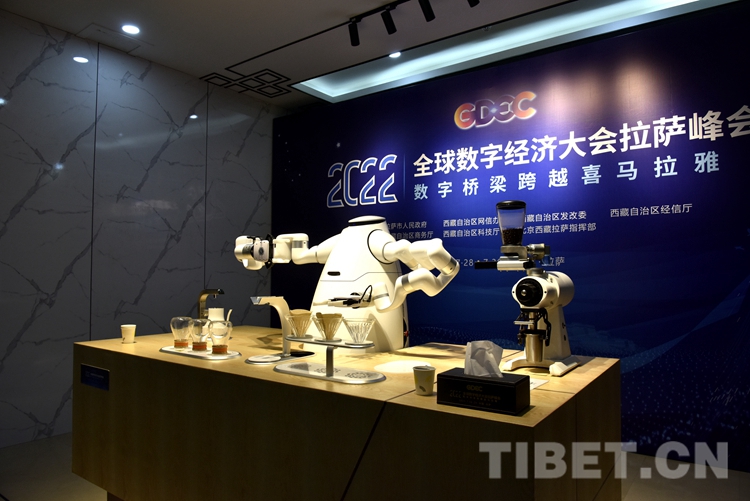 圖為2022全球數(shù)字經(jīng)濟(jì)大會(huì)拉薩峰會(huì)設(shè)置的智能機(jī)器人——智咖大師展示 攝影:王媛媛
