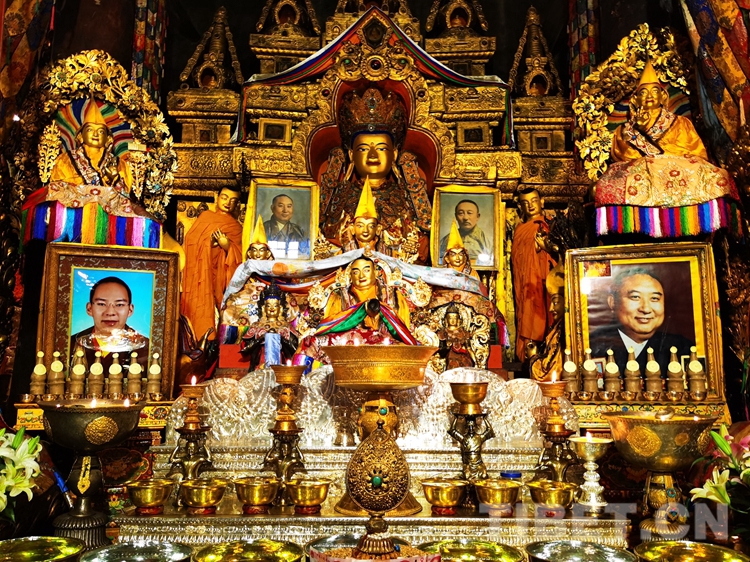 圖為班禪在拉讓日光殿誦經(jīng)祈福 攝影:王淑