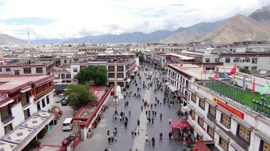 圖為俯瞰拉薩八廓街 圖片來源:中央廣播電視總臺(tái)央視新聞官方賬號(hào) 攝影:李旭