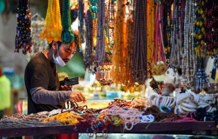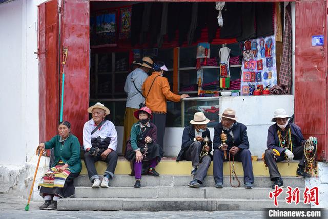 圖為在八廓街上休息的人們 圖片來源:中國(guó)新聞網(wǎng) 攝影:貢嘎來松