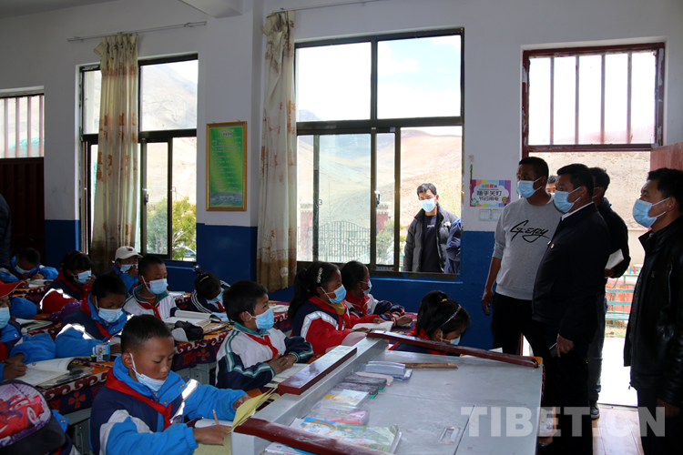 圖為次仁頓珠在白朗縣轄區(qū)某小學(xué)視察教學(xué)工作、慰問(wèn)學(xué)校師生