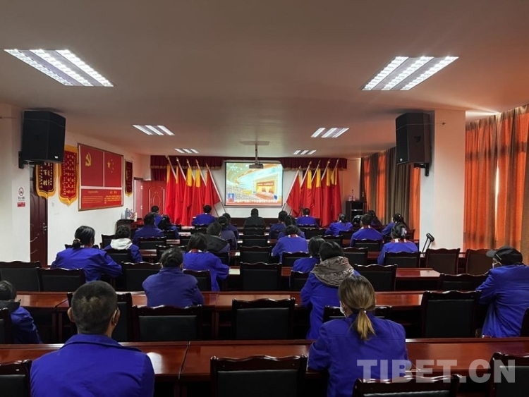 圖為西藏自治區(qū)山南市乃東區(qū)干部群眾收聽收看黨的二十大開幕會(huì) 圖片來(lái)源:藏源發(fā)布