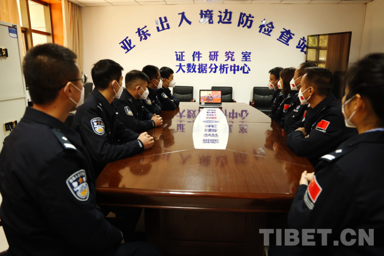 圖為亞東出入境邊防檢查站組織民警收看黨的二十大開幕會 攝影:劉向遠(yuǎn)