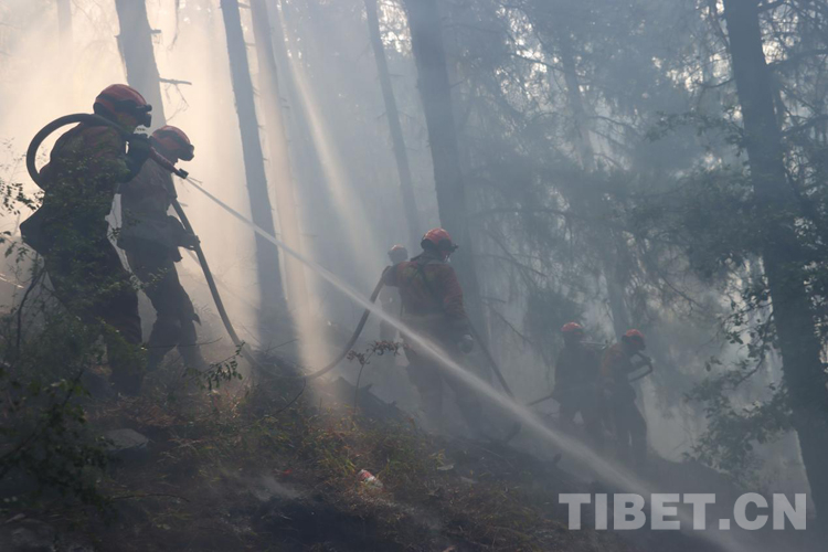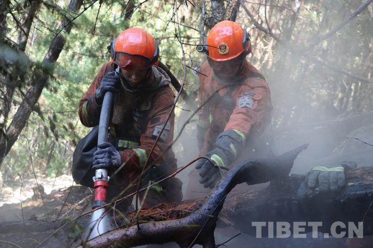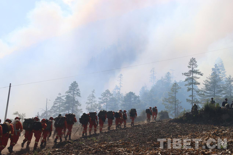 火場上,不說有感天動地的故事,但是那種“無畏火魔、不怕犧牲、舍我其誰、團結協(xié)作”的故事卻到處可見。那天,我們在接警后,第一時間趕赴現(xiàn)場,當看到一條長長的火線猶如一條蜿蜒的巨龍盤旋在空檔村山腰,火舌在大風助威下翻滾著向南側撲去時,飛哥和我各帶領10名黨員骨干以南北兩翼夾擊的陣勢迎戰(zhàn)火魔。在高達2800米的原始林區(qū),夜里溫度接近-5℃,槍頭手高琪已全身上下濕透并伴隨冰片的出現(xiàn),隱約透著讓人冷顫的寒光,顫抖的身體讓槍頭不斷左搖右擺,但他毅然肩扛槍頭,勇斗火魔。撲救完畢后,剛要準備休整,中隊接到殲滅山頂火點的任務,火情就是命令,指戰(zhàn)員背著沉重的裝備在近70-80度的亂石陡坡上,抓著樹枝一步步向上攀爬,16年兵齡的王建紅在爬山過程中使勁喘息,即使空氣中彌漫著飛舞的灰,也為吸取更多的氧氣保持體力;接近山頂時,一顆直徑約80cm的滾石從山頂滾落,體型弱小的二級消防士曹橋在緊促的避險哨音中采取緊急避險措施成功躲避,滾石與他擦肩而過,但危險的環(huán)境未能抑制他戰(zhàn)斗的決心。中隊指戰(zhàn)員暢談此次滅火作戰(zhàn)感受時,都紛紛笑言:“我們從海拔2300米打到了3700米,相當于從察隅到了拉薩?!?1日,中隊轉戰(zhàn)火場西南線,此時經(jīng)過5天的連續(xù)奮戰(zhàn),指戰(zhàn)員的思考能力和興奮的感覺消失殆盡,只剩下機械式行走的軀體,膝蓋有舊傷的戰(zhàn)斗班班長王明因為超負荷運動已疼痛難忍,但他在咬牙堅持。班長宋遠金、扎西歐珠主動擔當不畏艱險,從不到2300多米的地方,背著滅火裝備和滿滿的水桶,爬到4000米的山頂排除隱患,清理煙點。