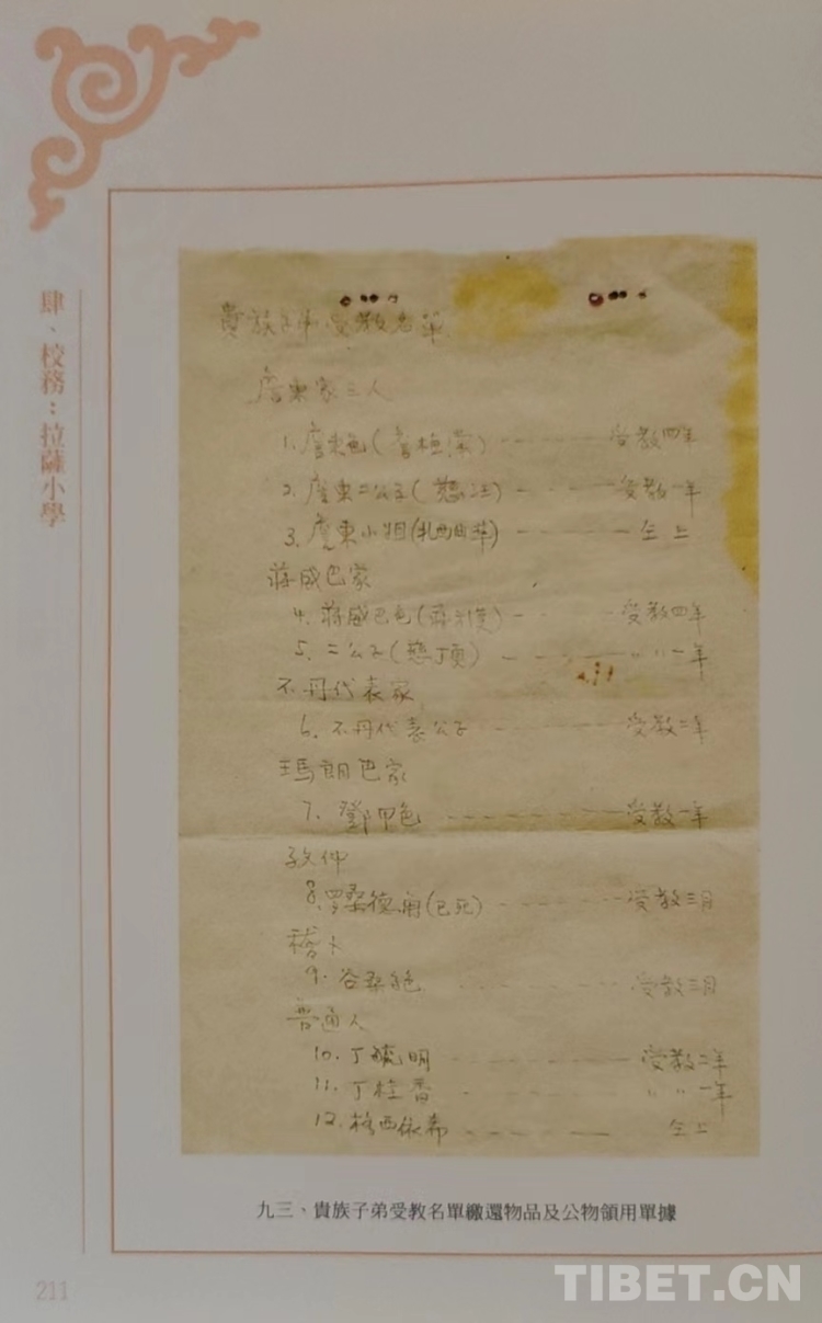 這期間,因為學校成績斐然,影響大增,不少貴族子弟也慕名前來就讀。拉薩小學專設(shè)一個特別班,招收貴族、富商的孩子,他們的教學是漢藏文一起上。在這個班里先后就讀的貴族子弟不少。如詹東家族的三兄妹,即詹東色、詹東·慈汪、詹東·扎西曲準。詹東色有個漢語名字,叫詹逢春(又稱詹植棠。他是個對中華文化非常喜愛的貴族子弟,會一口流利的四川話,還跟阿旺堪布的一位漢族徒弟學會了唱京戲。他曾在蒙藏委員會委員長吳忠信進藏主持達賴喇嘛坐床典禮時,全力給予了幫助。此外,在拉薩小學上學的還有瑪朗巴”家族、“稽卜”家族的子弟。十四世達賴的二哥嘉樂頓珠也曾在這里學習過。其他還有邊覺、唐麥、夏扎、雪貴巴等的子女。
