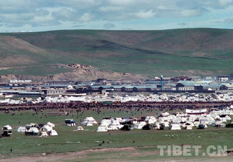 這是在藏北首府那曲鎮(zhèn)賽馬會上,臨時搭建起的各式帳篷(唐召明1987年夏攝)