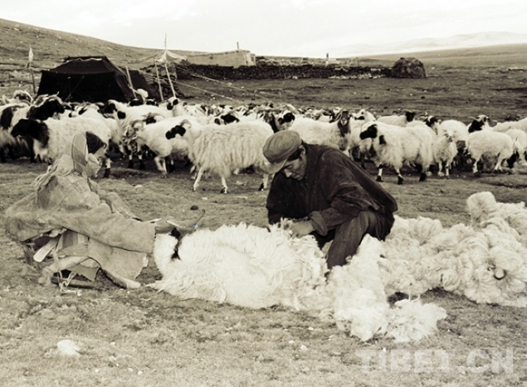 由于藏北草原遼闊而又人煙稀少,很多牧活靠家庭間的幫助與協(xié)作完成。剪羊毛歌與西藏眾多的勞動歌相似,是牧民在剪羊毛時和著勞動拍子邊唱邊剪的一種勞動歌曲。