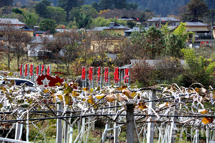 圖為下察隅鎮(zhèn)的一個(gè)邊境小康村前面配套的獼猴桃產(chǎn)業(yè)園 攝影:王佳豪