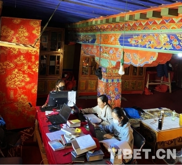 圖為2021年,西藏民族大學實習生對布達拉宮藏經進行記錄和統(tǒng)計