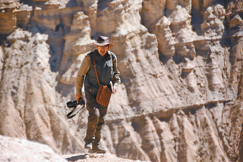 圖為張建林在野外考察 攝影:王毅 圖片來源:人民日報