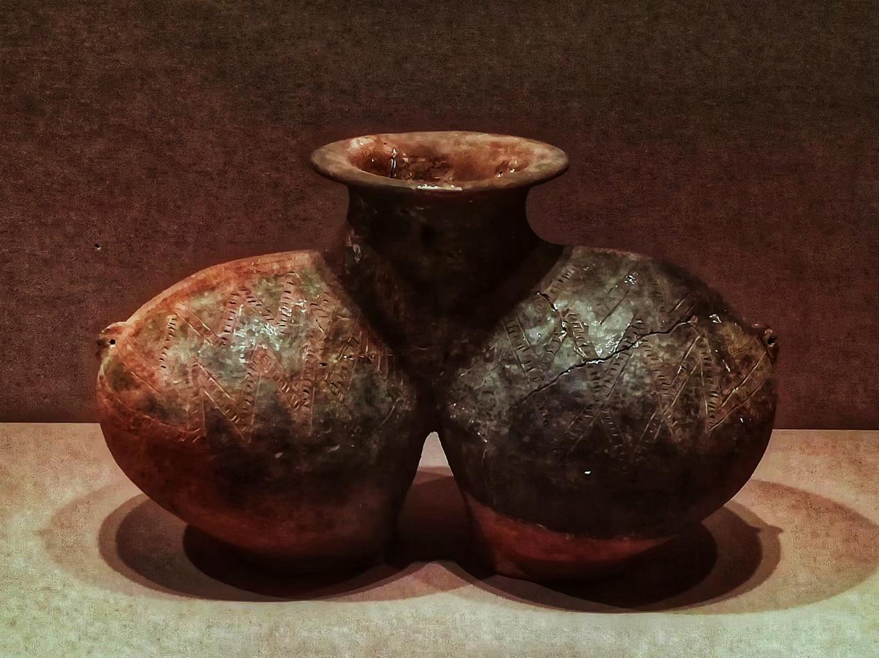 圖為西藏自治區(qū)昌都市卡若遺址出土的雙體陶罐 攝影:李元梅