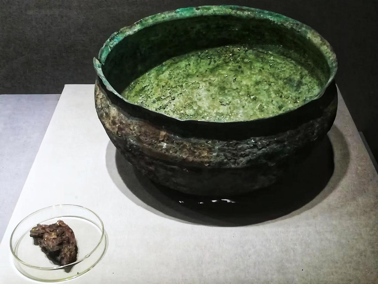 圖為西藏自治區(qū)阿里地區(qū)噶爾縣故如甲木墓地出土的青銅茶鍋和茶葉 攝影:李元梅