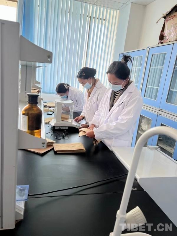 圖為西藏自治區(qū)農(nóng)牧科學(xué)院草業(yè)科學(xué)研究所科技人員在開展野生牧草種子生理試驗(yàn)