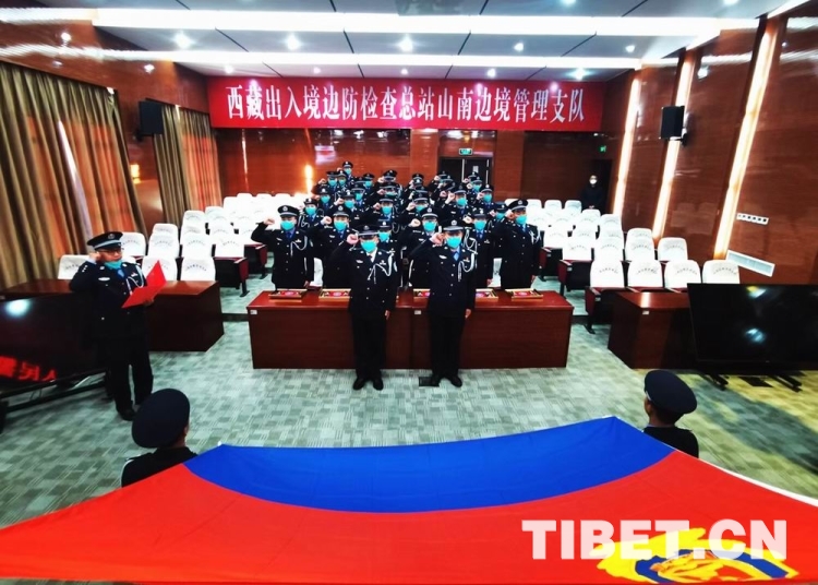 圖為山南邊境管理支隊(duì)全體民警重溫入警誓詞 鄭琦山 攝