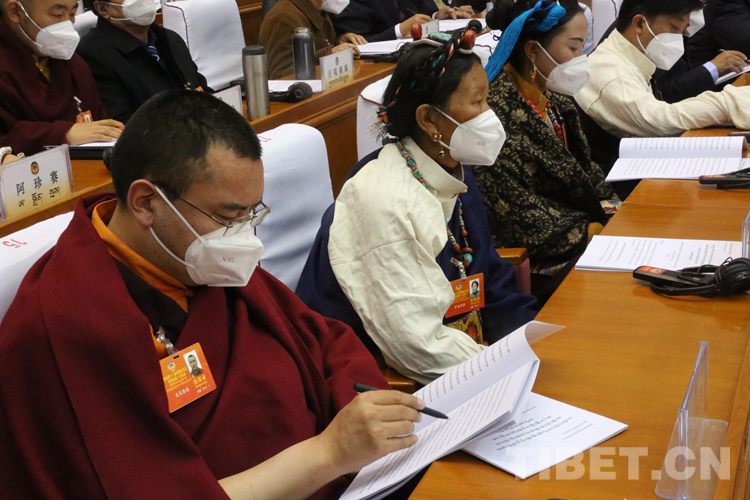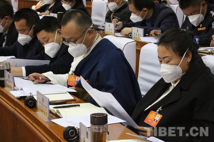 圖為嘎瑪澤登代表政協(xié)第十一屆西藏自治區(qū)委員會常務(wù)委員會向大會報(bào)告工作 攝影:王佳豪