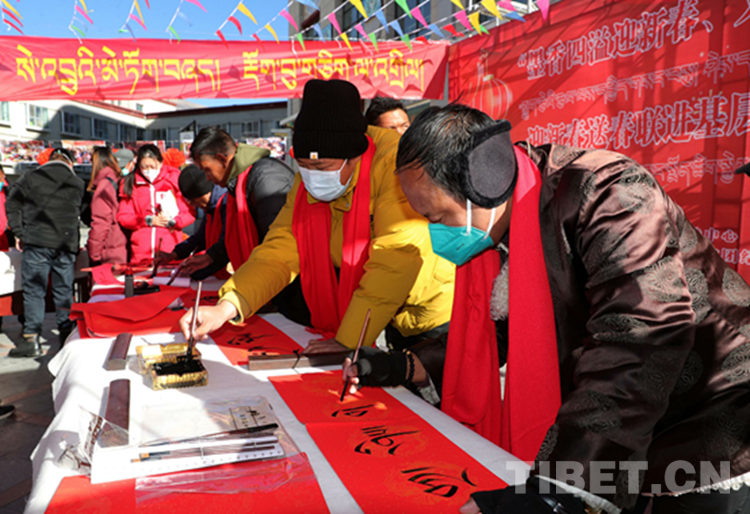 中國西藏網(wǎng)訊“今天好熱鬧呀,來到這里春節(jié)的氛圍一下就濃了?!苯?,以“墨香四溢迎新春、文明創(chuàng)建沁民心”為主題的迎新春送春聯(lián)進(jìn)基層志愿服務(wù)活動,在西藏自治區(qū)山南市乃東區(qū)澤當(dāng)鎮(zhèn)龍馬民族團(tuán)結(jié)廣場開展。