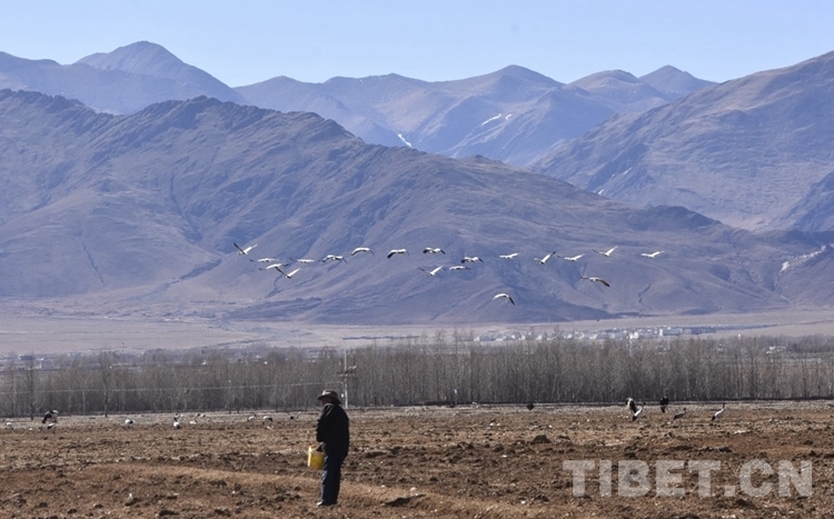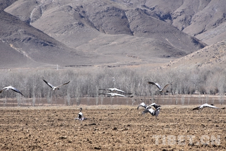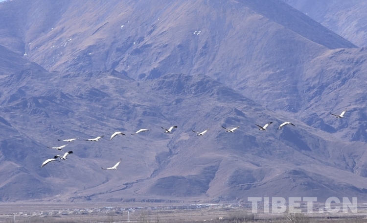 中國西藏網訊 地處雅魯藏布江中游河谷地帶的西藏自治區(qū)拉薩市林周縣,被稱為拉薩“糧倉”。每年的冬季,林周縣虎頭山水庫因兩面夾山,周邊有大片的良田,成為黑頸鶴覓食、夜棲的佳地。