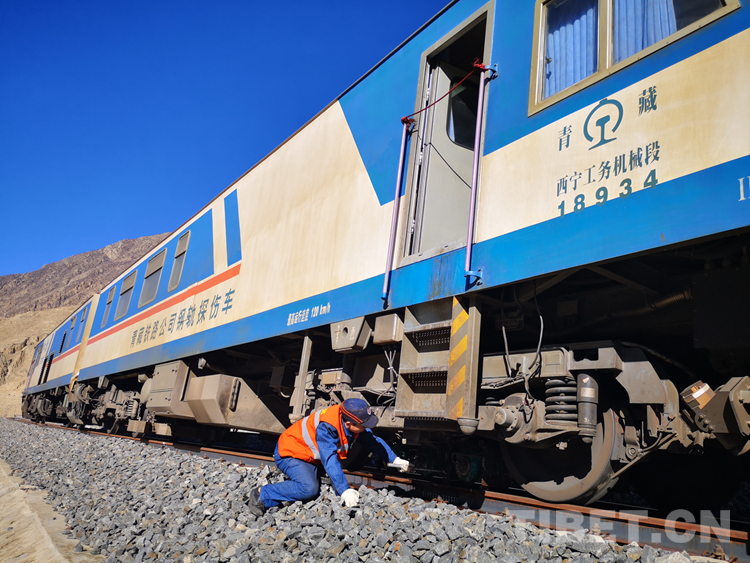 圖為工作人員檢測(cè)拉日鐵路的鋼軌是否存在內(nèi)部損傷