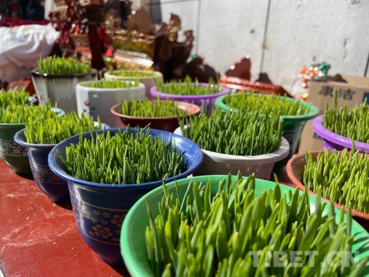 圖為藏歷新年期間,西藏年貨市場里的青稞苗 攝影:德吉卓瑪